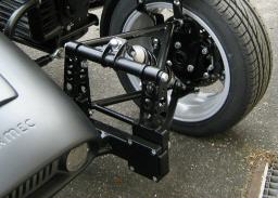1.) EasyDrive is a double wish bone construction that is linked to a lenghtened sidecar chassis. Two parallel torque rods divert the movement from the handlebar onto the wheel.